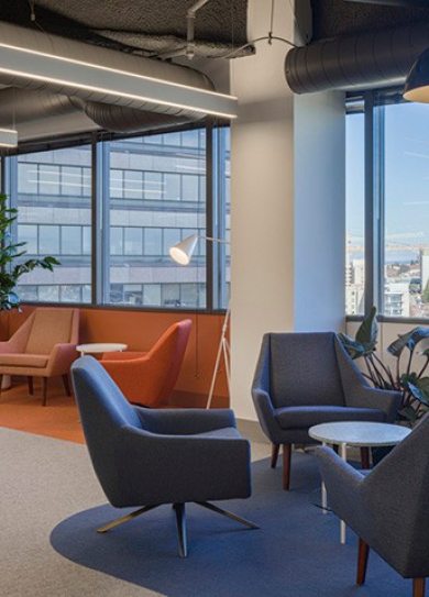 標(biāo)簽: 融合餐廳裝修設(shè)計(jì) 主題餐廳裝修方案 READ MORE科技的觸角無(wú)處不在,解決著人們身邊的各種麻煩,那么科技公司的辦公室都是什么樣的呢?今天鄭州宏鈺堂裝飾小編要為大家推薦的是1200平時(shí)尚多彩醫(yī)療科技公司辦公室裝修設(shè)計(jì)案例??偛课挥谖餮艌D的98point6是一家遠(yuǎn)程醫(yī)療初創(chuàng)公司,它的平臺(tái)將臨床醫(yī)生與人工智能結(jié)合起來(lái),提供基于文本的醫(yī)療服務(wù)。新擴(kuò)張的樓層位于25樓,站在這里,西雅圖的市中心、埃利奧特海灣、以及雷尼爾山盡收眼底。而辦公設(shè)計(jì)團(tuán)隊(duì)也利用這得天