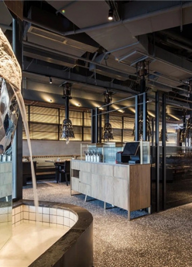 標(biāo)簽: 工業(yè)風(fēng)廠房裝修案例 辦公樓改造裝修設(shè)計(jì) READ MORE烤肉店流派極多,韓式燒烤則憑借多項(xiàng)優(yōu)勢(shì)在市場(chǎng)上獨(dú)領(lǐng)風(fēng)騷。今天要為大家推薦的漢陽館烤肉大師是一家不用自己動(dòng)手烤肉的高級(jí)特色烤肉餐廳,下面就跟隨鄭州餐廳裝修公司宏鈺堂裝飾小編一起來欣賞吧!漢陽館入門區(qū)域用柔和的燈光制造溫暖感去迎接每一位顧客。在弧形坡頂和上翹的屋檐外巧妙地注入小型的照明設(shè)備,去突顯黑色材質(zhì)與金屬色的高級(jí),營(yíng)造出高端大氣的就餐氛圍,且保留著順德古城的街巷阡陌的既視感。 每一格的