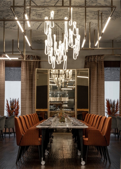 標(biāo)簽: 200平辦公室裝修設(shè)計(jì) 工業(yè)風(fēng)辦公室裝修實(shí)景圖 READ MORE位于俄羅斯莫斯科麗思卡爾頓酒店內(nèi)的一個(gè)獨(dú)特的概念餐廳,由當(dāng)?shù)氐氖覂?nèi)設(shè)計(jì)師Yuna Megre設(shè)計(jì)。該餐廳裝修設(shè)計(jì)旨在根據(jù)食客的品味和感覺精心設(shè)計(jì),就像一套真正的意大利服裝,并且餐廳的命名很有意思,名為“Sartoria Lamberti”,意為“裁縫”。 Sartoria Lamberti邀請客人進(jìn)入一個(gè)獨(dú)特的意大利時(shí)尚和美食的融合。下面就跟隨鄭州專業(yè)餐飲裝修公司宏鈺堂裝飾小編一起來欣賞吧!A u