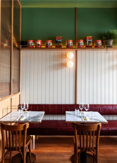 標簽: 早教機構裝修設計 幼兒早教機構裝修設計方案 READ MOREVesta餐廳獨特的當代風格設計,讓人聯(lián)想起20世紀70年代北美常見的意大利家庭式餐館。白橡木、漆松木鑲板和紅色皮革為空間增添了家庭般的溫暖。下面就和鄭州餐廳裝修公司宏鈺堂小編一起來欣賞!由米色涂漆鋼與白色橡木打造的小吧臺被設置在餐廳中央,吧臺后面是一個用熱軋鋼和白橡木制成的展示酒柜。開放式廚房使客人能看到從紐約進口的巨型披烤爐,還能觀察廚師們在大理石操作臺上制作披薩的過程。除此之外,一個長達20