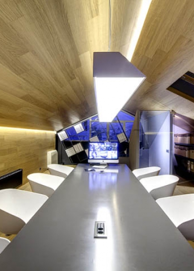 標(biāo)簽: 高端法式餐廳裝修方案 西餐廳裝修設(shè)計案例 READ MORE雅典建筑設(shè)計公司Golden Ratio將他們自己的辦公室設(shè)計的非同尋常,簡潔、個性卻又不失溫馨,一如他們公司的命名“Golden Ratio”將黃金分割用于空間的設(shè)計中,展示出身為建筑師的專業(yè)功底。下面鄭州專業(yè)辦公室裝修公司宏鈺堂裝飾就為大家詳細(xì)介紹下。 入口三盞由安全帽制作的壁燈,以及由螺絲釘拼成的公司logo,隱喻了公司的行業(yè)特性。室內(nèi)只選用一種闊葉木的飾面材質(zhì)覆蓋地面、墻體與斜坡屋頂