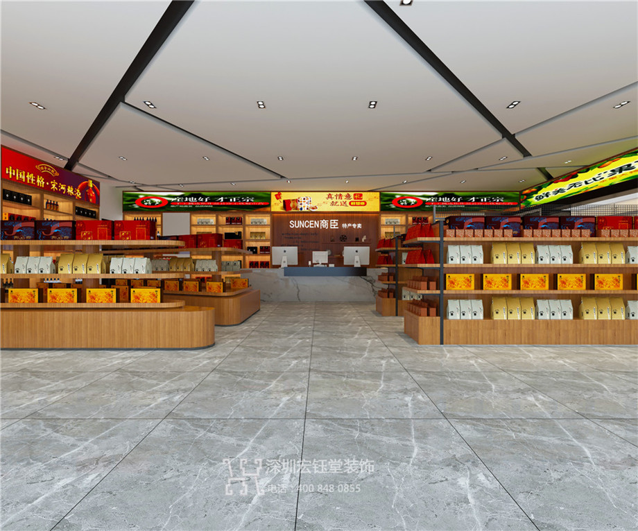 商臣特產(chǎn)正大樂(lè)城店是商臣連鎖便利店旗下首家以各色特產(chǎn)為主的專賣店,依托高鐵站龐大的人流量,希望帶給人們不一樣的購(gòu)物新體驗(yàn)。鄭州專業(yè)商業(yè)店面裝修公司宏鈺堂裝飾以精品店的概念打造整個(gè)銷售空間,明亮通透的全景落地玻璃將店內(nèi)形象最大限度是展示給過(guò)往客戶,全木質(zhì)打造的貨架在燈光的映襯下十分溫潤(rùn),簡(jiǎn)約明快的室內(nèi)設(shè)計(jì)風(fēng)格營(yíng)造輕松怡人的購(gòu)物氛圍。